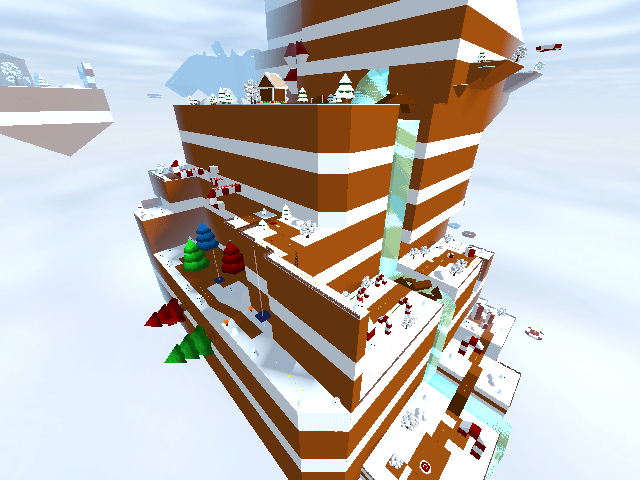 Welcome to Mt. Gingerbread, the premiere spot for any hiker worth their salt! Climb up the festive mountain and see its many sights, talk to the locals and collect the Completion Star at the end! This level has 9 Blue Coins. Level by Jussii64 and Velvet.